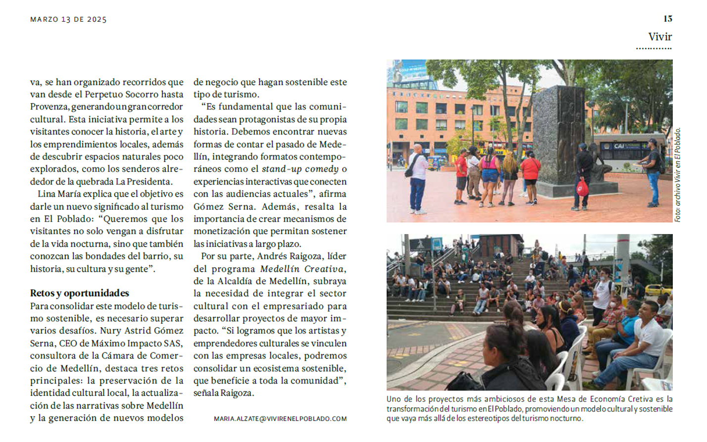 Créditos: Revista Vivir en El Poblado | Edición 897 | Marzo 13 del 2025 | Páginas 14 y 15